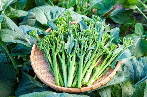 ☆底の⾓を特にしっかり押しておくと、焼き上がりの形がきれいになります。 - はなっこりーは⻑さ5cm程度に切る。フライパンにオリーブオイル⼤さじ1を熱してはなっこりーを炒める。仕上げに塩コショウを加える。